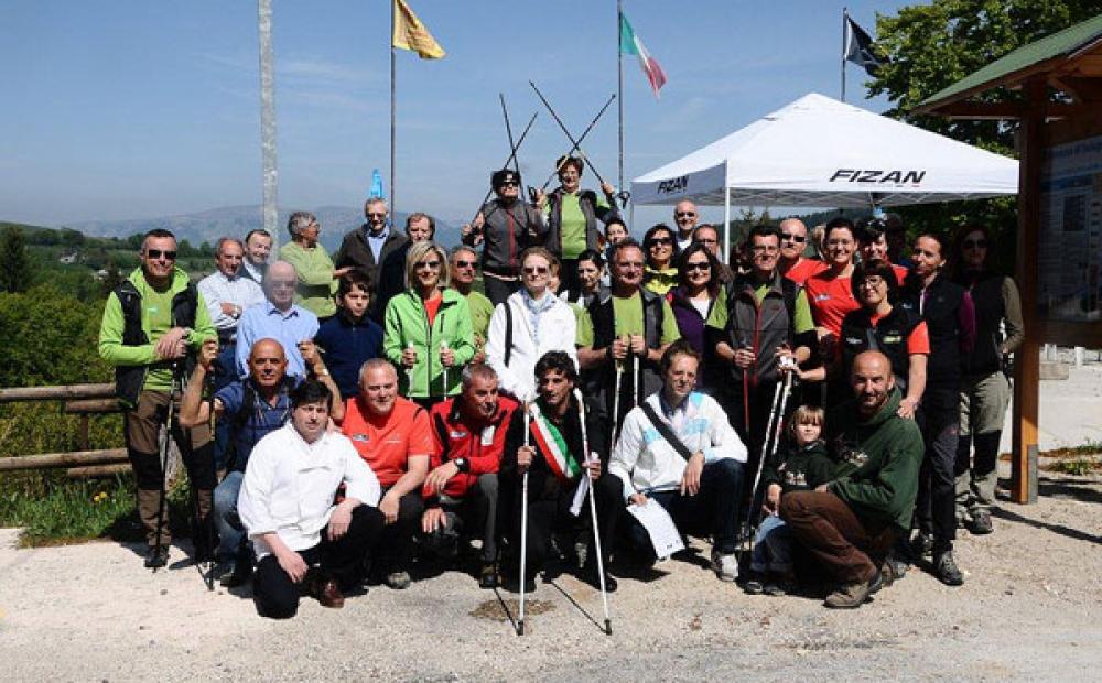 Foto di gruppo all'inaugurazione del Nordic Walking Park "Solagna nei Colli Alti del Monte Grappa"