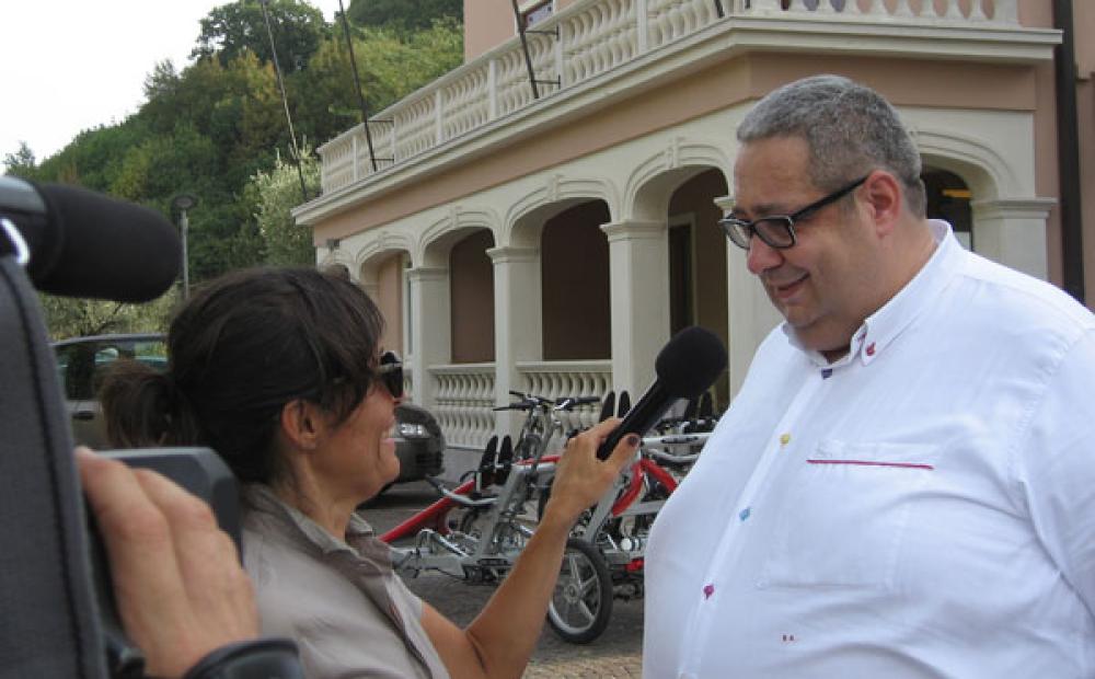 Dopo aver ricevuto pochi giorni fa - come già da noi scritto in un altro articolo - il giornalista tedesco Armin Herb, inviato della rivista tedesca di cicloturismo “Trekking Bike”, l'attivissimo albergatore ha aperto nuovamente le porte del suo Bike Hotel “Alla Corte” a un'altra delegazione, questa volta televisiva, di tutto rispetto.