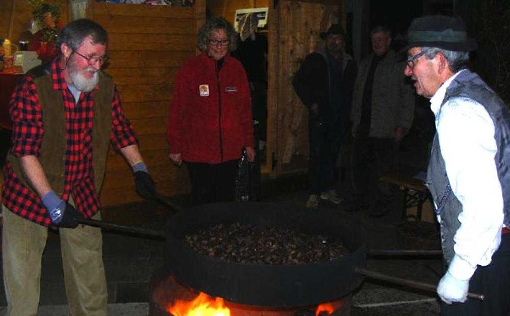 La preparazione in diretta dei "marroni rosti" davanti alla casetta della Pro Loco (foto Alessandro Tich)
