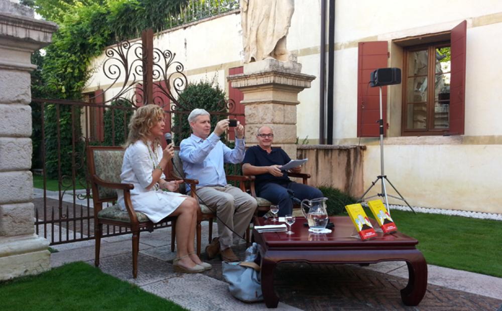 Jonathan Coe a Palazzo Roberti con Edoardo Menegazzo e la traduttrice Eleonora Andretta (foto di Dario Vanin)
