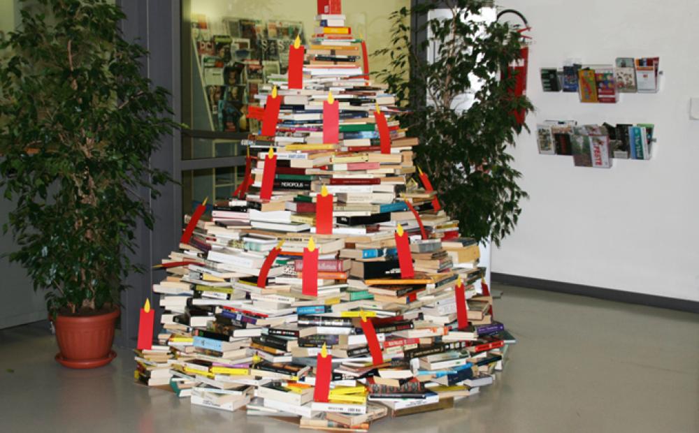 L'albero di Natale spuntato nella Biblioteca civica di Bassano
