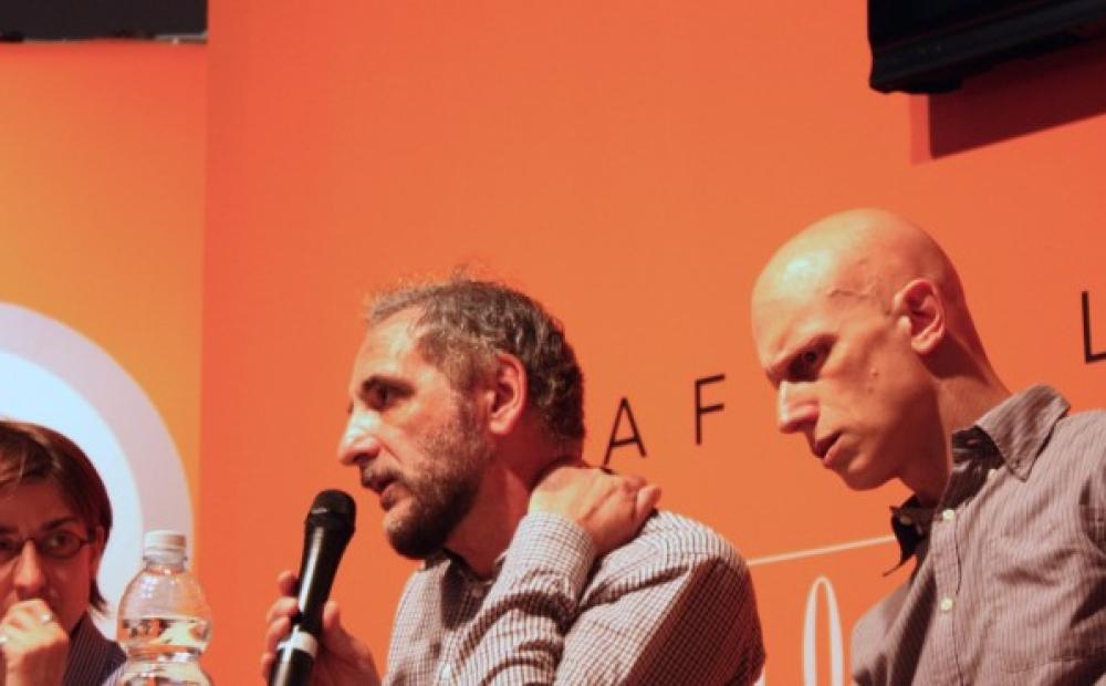 Michele Mari (al centro), autore finalista al premio Campiello 2014, al Salone del Libro di Torino