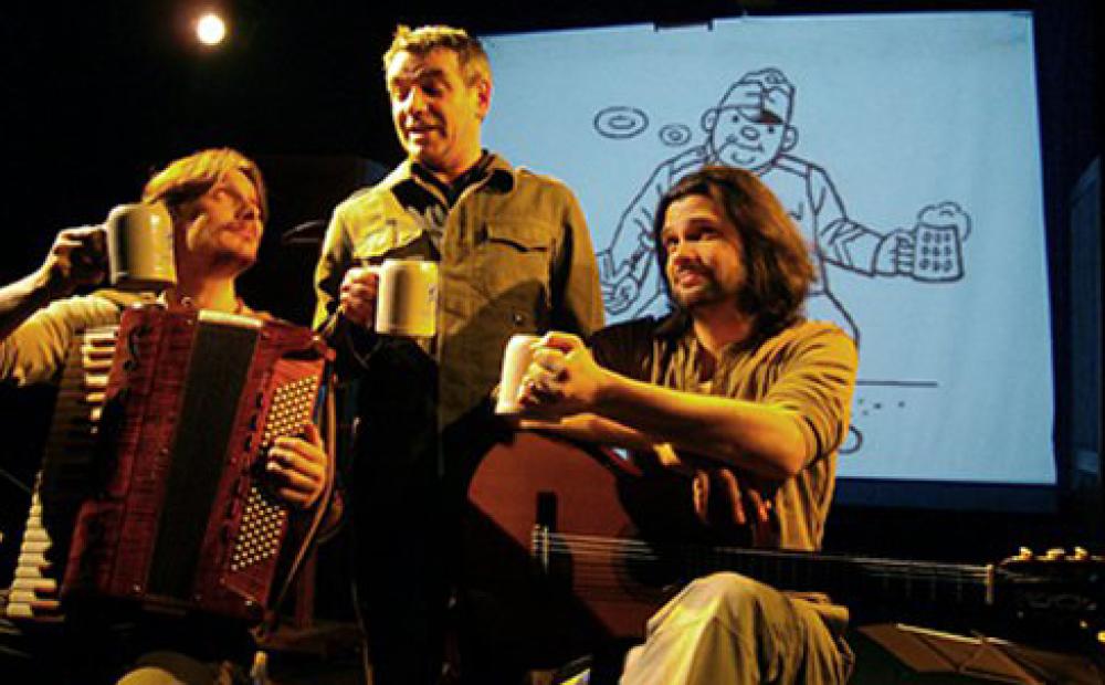 Vasco Mirandola, accompagnato da Giorgio Gobbo e Sergio Marchesini, della Piccola Bottega Baltazar, ha offerto la lettura scenica con canzoni e musiche del suo adattamento del celebre romanzo del praghese Jaroslav Hašek Il buon soldato Sc'vèik. Il romanzo fu pubblicato a Praga negli anni Venti – qualche anno dopo la proclamazione d’indipendenza della repubblica di Cecoslovacchia –, ma la comparsa del personaggio Svejk, largamente autobiografico, risale al 1911, qualche anno prima dell’inizio della Grande Guerra.