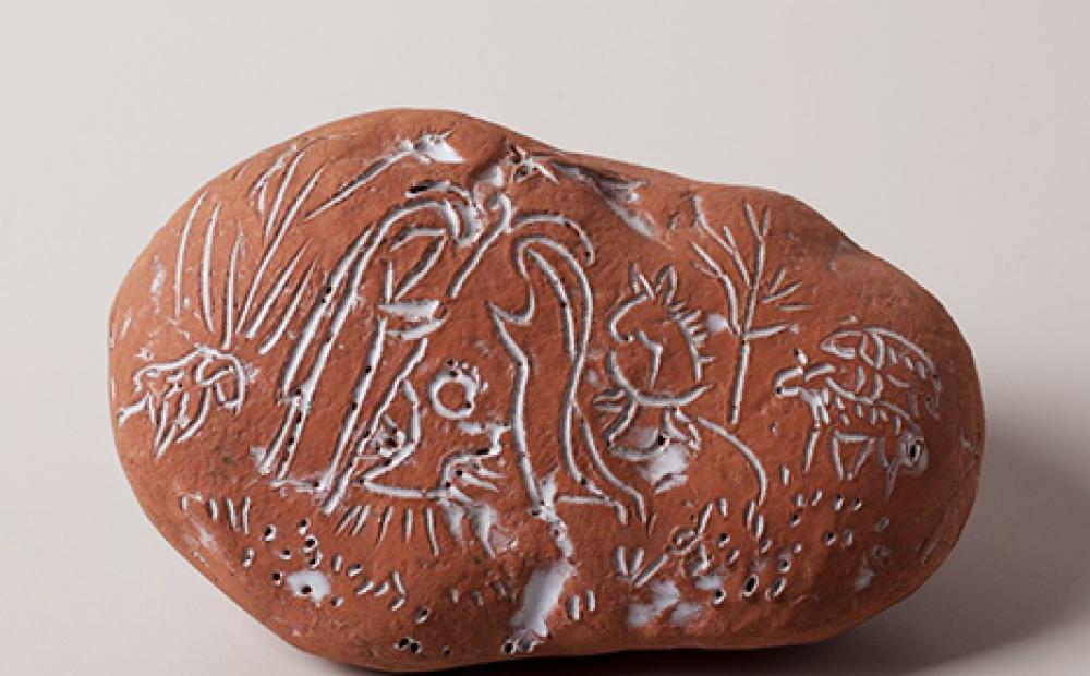 Il tema della Natività appare a prima vista improntato ai caratteri della tradizione e ai principi della devozione, così sembra ancora rivelare una lastra di Federico Bonaldi (Bassano, 1933 – 2012) figura che, nell’anno di una entusiasmante retrospettiva a lui dedicata, suggerisce un diverso un filo conduttore, popolare e colto al tempo stesso, emozionale e ironico. La variopinta schiera dei suoi cuchi di pertinenza presepiale, scelti fra le serie conservate al museo dei Cuchi di Cesuna, rivela un sapientissimo artigianato, ma anche spazi di sagge aperture premonitrici e affettuosi sorrisi.