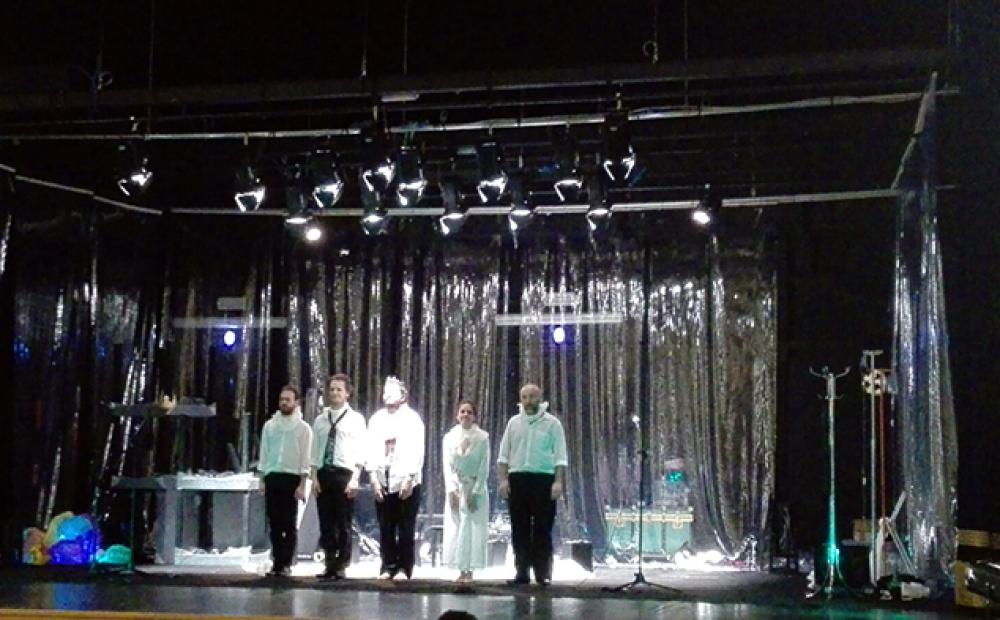 L’allestimento contemporaneo, curato da Floda Yensid e Stefano Razzolini (tanta plastica, anche sacchetti di nailon comparsi sui volti degli attori a soffocare esistenze e parole; solo tavoli e sgabelli in scena, un po’ tavoli da obitorio un po’ palco sul palco, da cui declamare i versi alati del Bardo; luci da party e spettrali torce al led), insieme alle musiche composte da Mimosa – interessante giovane attrice e cantautrice italiana che ha già in attivo diverse produzioni e collaborazioni di successo – a tratti quasi dei jingle, e ai numerosi slogan moderni alla Yes, we can, che qui assumono un’inevitabile connotazione a tinte macabre, oltre agli inserti drammaturgici aggiunti testo originale, hanno contribuito a un innesto efficace nella contemporaneità dei temi della corsa al potere, e dei meccanismi della passione, messi in scena da Shakespeare. A questi, sono stati aggiunti, coi linguaggi della modernità, quel senso di spaesamento e di resa-offesa nei confronti della manipolazione per interessi altrui di cui siamo tutti vittime, allora come ai nostri tempi.