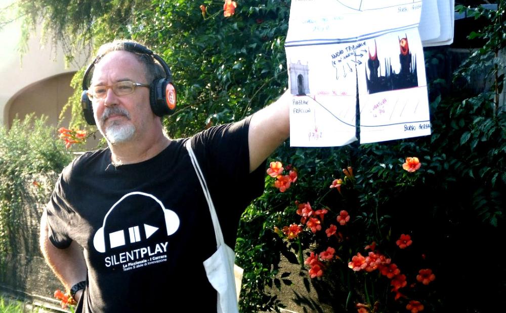 Silent Play è un progetto di drammaturgia dei luoghi, una vera e propria audio guida teatrale urbana, interattiva, poetica e giocosa. È una serie di itinerari da percorrere a piedi, per una piccola comunità in movimento condotta da un attore performer, ma anche uno spettacolo diffuso, che è al contempo esperienza ludica interattiva, progetto di indagine e azione resiliente di cittadinanza.