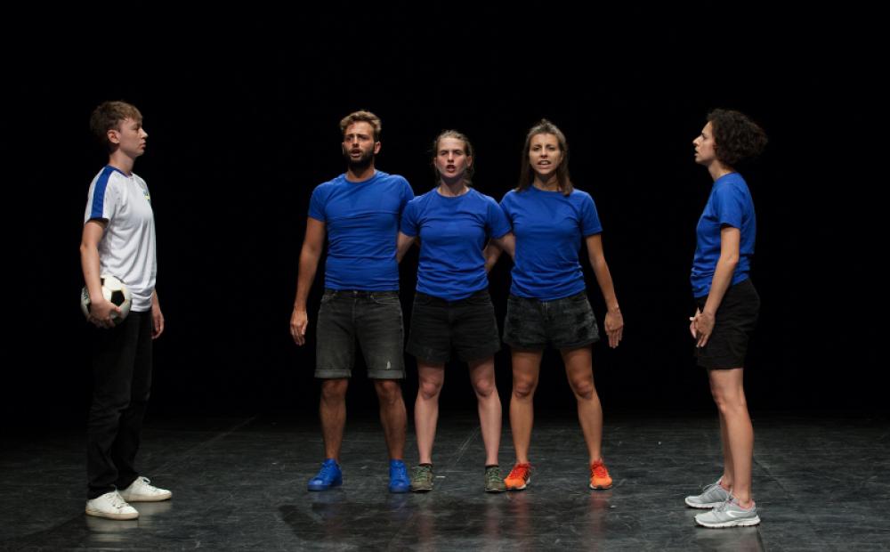 La gente è rappresentata di quattro giovani attori nell’assetto perenne di un coro che re-agisce all’unisono alla presenza inedita, non prevista del nuovo vicino di casa. Per opportunità del genere di quelle da tre scimmiette le persone in transito, con un’identità non definita, o non riconosciuta, non vengono considerate, o peggio, nel tessuto sociale imbastito da una sottocultura binaria. Incapace di gestire le emozioni che suscita il contatto con “l’alieno” che tende loro il dito, la comunità avanza comportamenti che declinano gran parte degli schemi e degli stereotipi che la governa: curiosità morbose; paure eccessive, un panico da bigotte, detto alla Jacques Brel, che fa chiudere in un recinto al comando dell’urlo: “i bambini!”; abbracci invadenti che fanno più male che bene e forme di non ascolto inquietanti, assordati dal canto delle loro stesse voci incongrue, linkate, che urlano a squarciagola “voglio una vita spericolata” e lallano insieme lo sgomento per la vittoria di Donald Trump, e i “sì, chef” a cui ci ha abituato MasterChef Italia. Tutte forme di reazione che alimentano il senso di emarginazione e di stigmatizzazione che vive questa persona, nella sua corsa spesso in affanno a sperimentare un’esistenza dalle dinamiche complesse e drammatiche, dove neanche l’immagine e la forma del corpo sono definite e possono dare sicurezza.