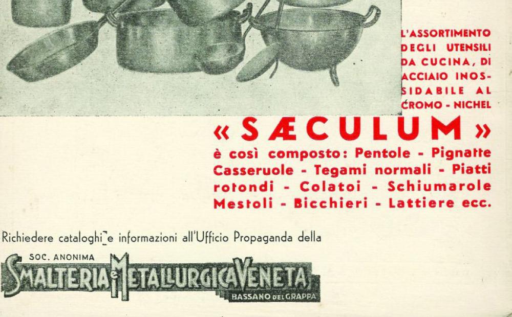 Alle stoviglie seguirono i radiatori per riscaldamento, e poi vasche da bagno, cucine economiche a legna e a gas e lavelli in acciaio inossidabile, oltre ad attrezzature utilizzate nell’industria del latte e dell’olio d’oliva.