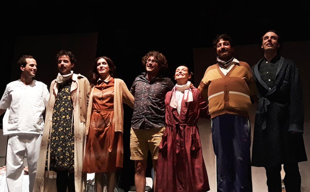 Sul palco di Visite gli interpreti Cecilia Campani, Giovanni Longhin, Andrea Panigatti, Sandro Pivotti, Maria Vittoria Scarlattei e Matteo Vitanza diretti da Riccardo Pippa, e con loro le immancabili maschere di Ilaria Ariemme.