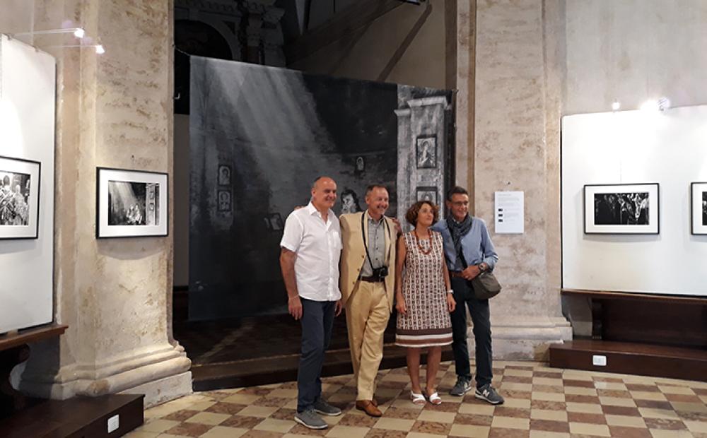Nella chiesetta dell’Angelo, si può ammirare inoltre “Venice still dances”, di Marc De Tollenaere, autore tra l’altro di diverse pubblicazioni per immagini e non solo dedicate alle meraviglie da Wunderkammer della città lagunare. Guarda ai “nativi”, De Tollenaere, o meglio ai residenti, il cui numero è diminuito drasticamente in questo primo ventennio degli anni 2000. La città che per undici secoli ha intrecciato le sorti di Oriente e Occidente custodisce ancora silenzi d’altrove tra calli e campielli, dietro le mura scrostate dalla salsedine, all’interno di edifici dai fasti insospettabili sconosciuti alle maree di turisti che con antenna-cellulare attivata su Maps alla mano invadono ogni giorno Venezia. Nelle fotografie di De Tollenaere, una città nella città che danza senza troppa tristezza: solo qualche languore da gondola ma tanti guizzi verdi negli occhi di questi luoghi e personaggi veneziani resistenti, ostinati.