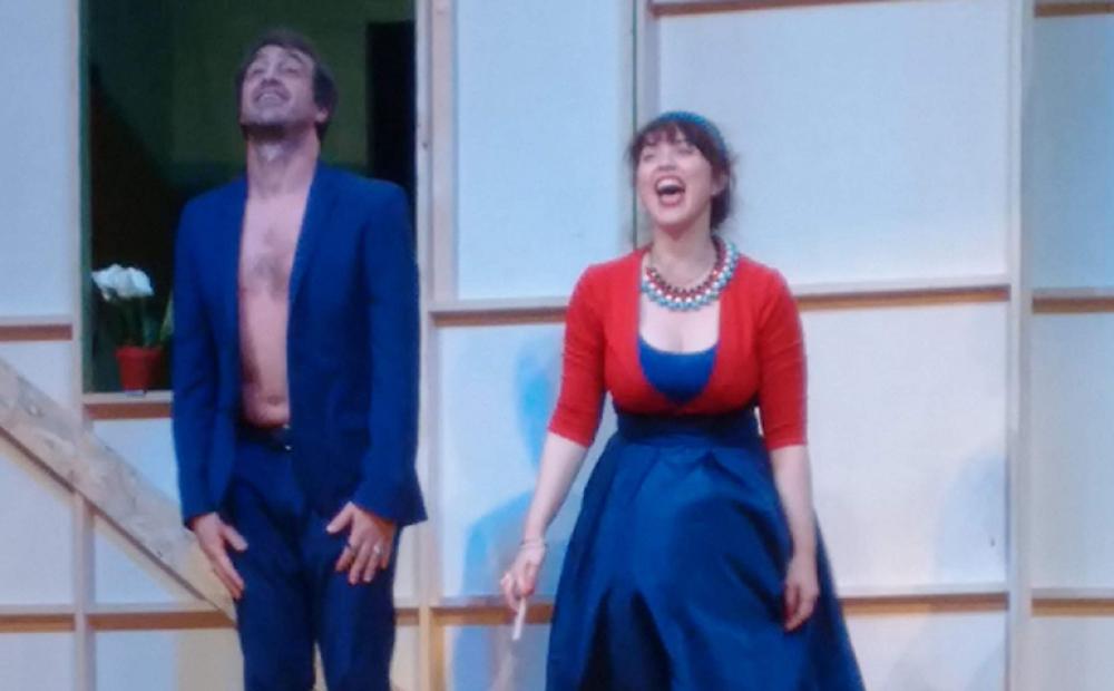 Le scappatelle e anche qualcosa in più trasposte sul palco toccano in sorte a un’Antonia più giovane, che strepita e si sforza di meno di stare al gioco, anche lei comunque finisce con l’approfittare gioiosamente delle vedute ampie della coppia aperta e se le gode. Trattandosi di vedute sempre un po’ troppo distorcenti per l’uomo e la società civile, la donna che spalanca le finestre rischia non solo gli alimenti ma anche l’incolumità, e Antonia-Chiara evita per poco di finire strozzata.
