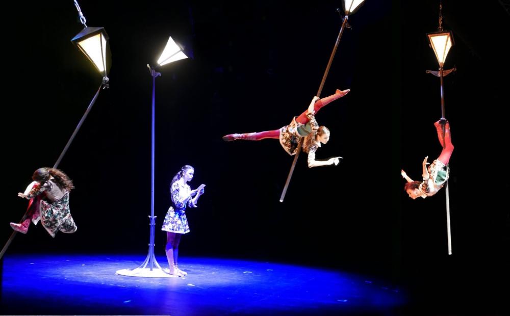 Lo show, a cura di “Circo e Dintorni”, nato da un’idea di Raffaele De Ritis e Alessandro Serena, ha aperto con i DekRu, quartetto di performer ucraini nato a Kiev nel 2010, maestri del teatro fisico ed eredi del grande Marcel Marceau, che hanno dato vita nel corso della serata, tra gli altri, a un affascinante mondo marino, a un albero nella tempesta, agli ingranaggi perfetti di un orologio; ha fatto seguito un’aggraziata performance con hula hop di Katlin Vassileva, che è poi ritornata in scena per volteggiare su un red carpet di tessuti aerei; Tim Kriegel, danzatore aereo dalle spaccate incredibili vincitore della medaglia d’argento al Festival du Cirque de Demain di Parigi, ha poi interpretato brani di musica classica appeso alle “cinghie del destino”. A intervallare tanta destrezza, e in apertura, prima che tutto il pubblico fosse accomodato in sala, le risate per le scenette e le improvvisate di Luca & Tino, “I Lucchettino”, definiti “gli Stanlio e Ollio italiani”, vincitori de il Mandrake d’Or di Parigi, l’Oscar mondiale della magia. Tornato il buio, ha cominciato a girare sul palco la ruota misteriosa di Francisco Rojas, acrobata che ha danzato volteggiando in un particolare attrezzo multicolore chiamato ruota Cyr; Olga Golubeva ha poi intrapreso un’arrampicata ed eseguito dei numeri di acrobazia pieni di poesia abbracciata a un “lampione”; Andrey Romanovsky, un talento eccezionale perfezionato alla Scuola del Circo di Mosca, detto “L’uomo di gomma”, ha interpretato un inedito spazzacamino. Hanno chiuso lo spettacolo i “Titani dorati”, un duo di equilibristi possenti completamente dipinti d’oro, che si sono esibiti in “Golden Power”.