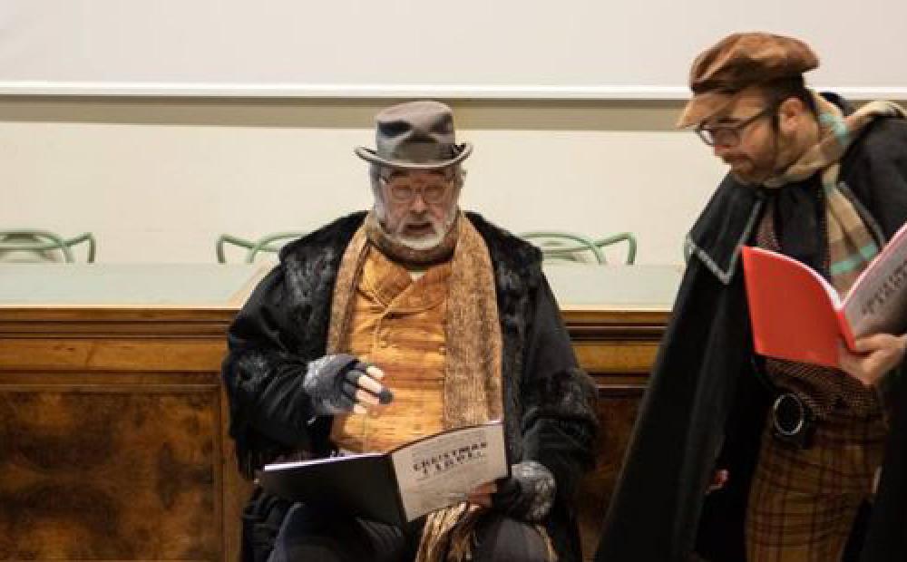 La compagnia vicentina ha proposto una lettura liberamente tratta dall’opera di Charles Dickens, meno di un’ora di ascolto per ricordare insieme i passi essenziali della storia di Ebenezer Scrooge e del suo Natale speciale. Sul palco con Carlo Presotto tre attori-lettori: Aurora Candelli, Paola Rossi e Matteo Balbo.