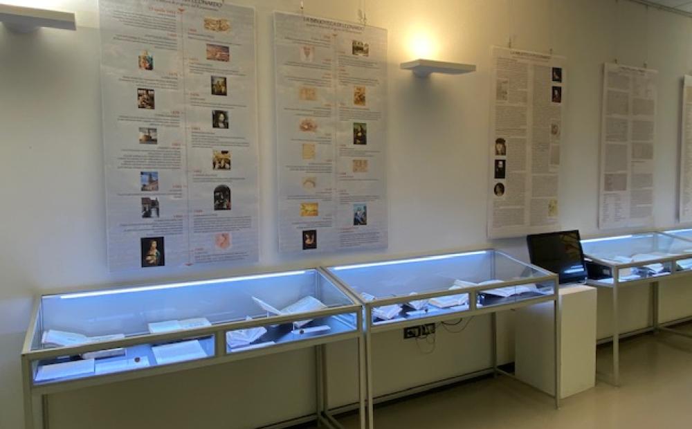 Scegliendo tra i fondi antichi della biblioteca civica, è stato ricreato un percorso ideale tra manoscritti e codici del XV secolo ed edizioni del Cinquecento; corredati da pannelli informativi, i volumi in mostra, per quanto non necessariamente corrispondenti alle edizioni davvero lette e possedute da Leonardo, sono stati scelti con cura e suddivisi in quattro sezioni: “Gli interessi letterari di Leonardo”; “Architettura civile e militare”; “Tra storia e filosofia”; “L’amore per le scienze e la natura”.
