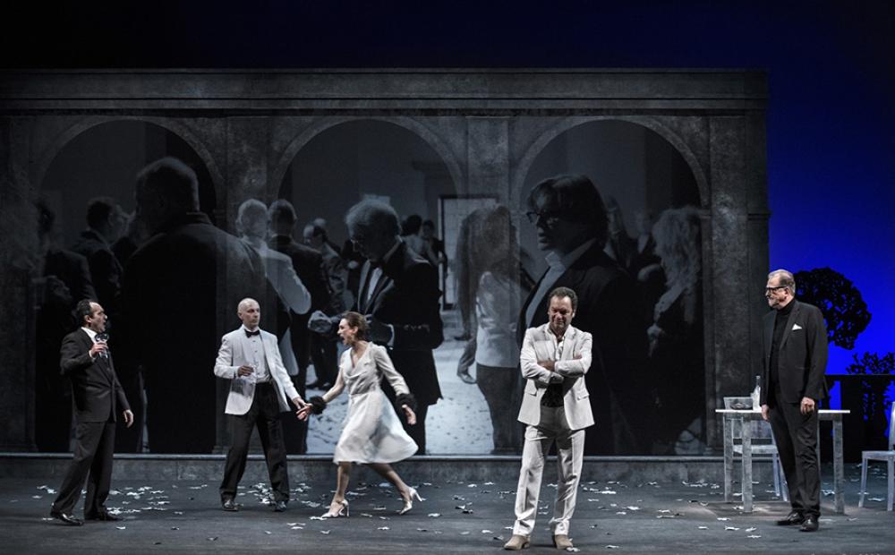 Le polemiche che hanno investito lo spettacolo al suo esordio hanno a che fare con molti elementi esterni alla narrazione di Bugaro: il fatto che il direttore del Teatro Stabile del Veneto, Giampiero Beltotto, sia stato l’ultimo responsabile della comunicazione prima del crac della Banca Popolare di Vicenza; il fatto che lo spettacolo non sia strutturato come approfondimento circa i cavilli delle responsabilità; il fatto che i più deboli non vi siano rappresentati in alcun modo e che quindi l’etica sia il faro del racconto solo in una prospettiva a contrasto. La denuncia certo non arriva da qui, nessun J’accuse, ed è un altro fatto. Ma togliendo la funzione curativa, medicamentosa ai linguaggi della letteratura e del teatro — che certo non hanno se sono buona letteratura e buon teatro — si può dire che il prodotto anche se appare frammentario ha espresso una buona regia a cura di Rossetto, che prosegue il sodalizio con Bugaro dopo Effetto domino, in particolare è risultato appropriato il paesaggio sonoro curato da Lorenzo Danesin, e che il cast, camerieri compresi, ha interpretato bene il ruolo dei cattivi-quasi-stupiti-di-esserlo. Che ci sia una buona dose di banalità nel male si sa, è cosa nota, la tragedia è anche questa.