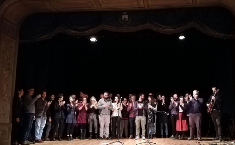Organizzata da un gruppo di associazioni e di compagnie in concerto col Comune e col Teatro, la serata è stata aperta agli utenti del web. Diversi artisti hanno accettato l’invito a partecipare, tra questi Andrea Pennacchi, Vasco Mirandola, Marco Tizianel e Stefano Razzolini della padovana Carichi sospesi, Giorgio Gobbo, Sergio Marchesini, Erica Boschiero, Andrea Dellai e molti altri. Tutti si sono alternati sul palcoscenico con pillole di spettacolo e di canzone con l’intento finale di portare all’attenzione del pubblico il disagio e le difficoltà che stanno vivendo tanti lavoratori professionisti del mondo dello spettacolo. Nessuna lamentazione da dibattito con opinionisti da salotto però, nessuna rivendicazione urlata, il linguaggio della protesta educata messa in campo, o meglio, in palco, è del tutto quello del teatro: perciò in questo “spettacolo che non c’è” incalza un alternarsi di scene che propongono frammenti degli spettacoli a cui attori e musicisti, registi e tecnici stavano lavorando prima del fermo imposto dai decreti per le misure di contenimento del Covid-19, e poi momenti di musica, letture e performance e tra questi anche creazioni originali ispirate all’attualità e alla situazione vigente che tutti stiamo vivendo, proposte attraverso sketch divertentissimi, dai risvolti tragicomici, come quello ideato da due attori di Stivalaccio Teatro (allo scadere dell’ora al minuto 1:00:00, per chi vorrà anche in differita guardare lo spettacolo sulla pagina Facebook del Teatro Filarmonico).