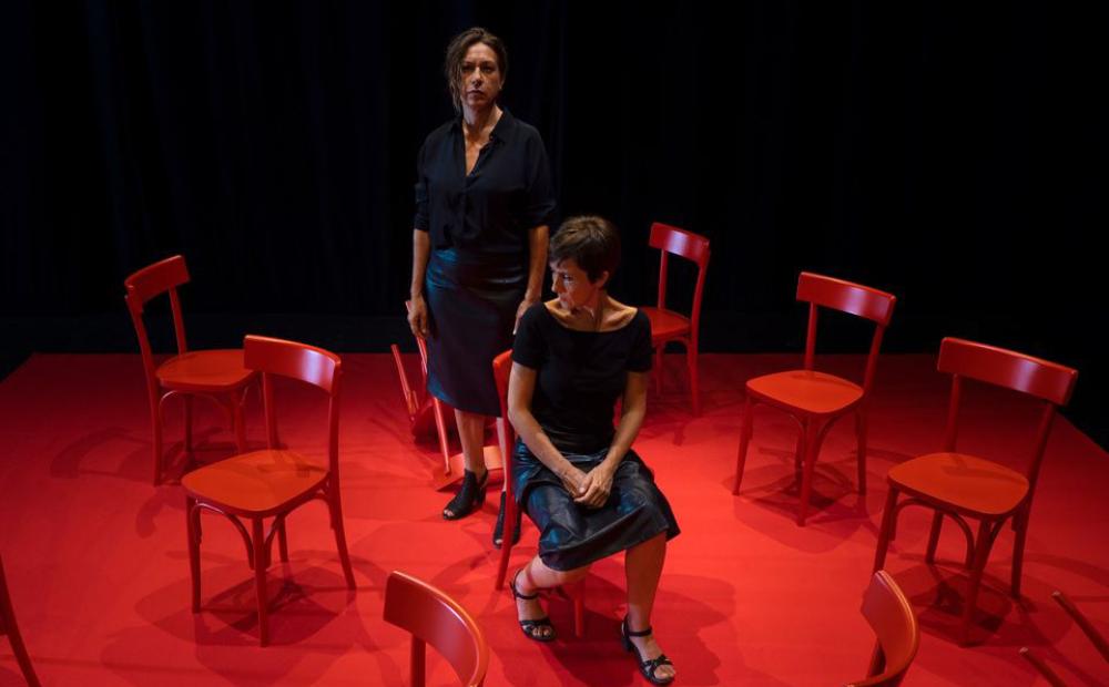 Sul palco solo 12 sedie rosse, a evocare di volta in volta una giuria, l’assenza colpevole o innocente di altri occupanti, il disordine mentale e il caos sospeso della casa ferita, irta di spine invece che protettrice, dove si è consumata la tragedia, ma è richiamata alla memoria anche una notte trascorsa in un camper, in “famiglia”. Il dialogo tra Giuliana e Roberta si snoda per capitoli, in solitudine e nel dolore. Il protagonista accusato non c’è, e comunque quando c’era negava; dalle dichiarazioni rilasciate a un’assistente sociale che gli ha fatto l’unica domanda che serviva fare, fuori dai denti, sembra che non ricordasse quello che faceva. Il non detto, oltre a lui, è il cattivo di questa storia che ha avuto come personaggi una madre-Pollyanna, un padre Ironman e una vittima sacrificale: Chiara. A un tratto si sente la sua voce di bimba canticchiare con un’energia strana, del tutto vitale: ma si è già con lei alla deriva nella tempesta. Non può essere altrimenti, “dentro” le parole della madre si assiste impotenti a una stortura di quelle che non si raddrizzerà, niente sarà più normale. I dialoghi informano di quanto le ha fatto il padre stupratore, di quello che le ha fatto la madre non accorgendosi di nulla, e di quello che non ha fatto una pletora di terapeuti, consulenti, educatori, medici, assistenti sociali, avvocati — non sforzandosi troppo di far uscire quelle precise parole, perché nessuno, se può e se riesce, vuole guardare negli occhi l’orrore.