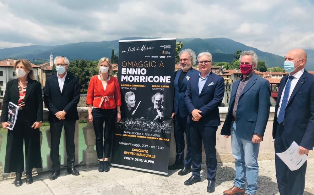 Sabato 29 maggio concerto sul Ponte di Bassano in omaggio a Ennio Morricone. In scena l'Orchestra Ritmico Sinfonica Italiana e il Coro lirico Opera House, diretti dal M° Diego Basso, col flautista Andrea Griminelli