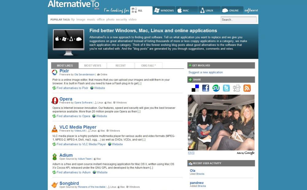 AlternativeTo elenca applicazioni per Mac, Windows e Linux e propone anche numerosi applicativi “web-based”.