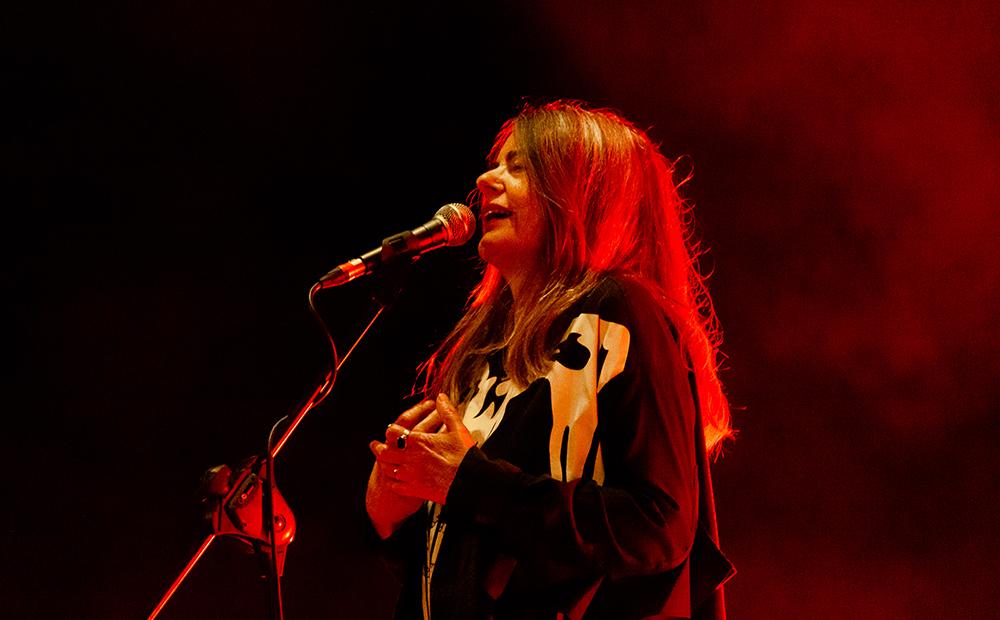 L’apertura del concerto è stata affidata a Cry, canzone tratta dall’album “L’anime nere” il cui testo è una sorta di manifesto di tanti temi che Nada affronta da tempo nella sua musica, dipanandoli in una sorta di tela sempre più ricca e preziosa, da tappeto volante, o anche per sottrazione più velata e sottile, quasi un bisso marino. Tante le canzoni offerte al pubblico contenute nel suo nuovo lavoro, che porta il titolo “La paura va via da sé se i pensieri brillano”, pubblicato a distanza di tre anni dal precedente disco di inediti e prodotto da John Parish, che nell’album suona quasi tutti gli strumenti. La voce di Nada è potente, graffiata quanto serve, e risuona valorizzata nell’Auditorium con un timbro inconfondibile. In In mezzo al mare, come in un ossimoro, si parla con aria e melodia gioiose di un tuffo nel mare di una vita che sa anche di pescecani, di una scelta di buttarsi che di questi tempi evoca ben altri tuffi. Viaggio leggero tratteggia tra le note un viaggio liberatorio e quasi lisergico dove si sogna di “pisciare sopra la città”, e Nada mima il gesto sollevandosi il lungo abito nero, indossato con gli anfibi — si resta per sempre “ragazze contro”. Seguono Banane City, pezzo dall’atmosfera visionaria, il ritmo da East Coast e il testo del tutto tropicale, dove si racconta il passaggio di una sorta di ciclone di quelli che investono le coppie che lascia appese banane sui rami della città. Chi non ha, è un j’accuse al consumismo che procede per frame cantilenati, ma non per questo depotenziati. Il lancio di questo brano è stato accompagnato da un bel video animato realizzato e diretto da Onze.