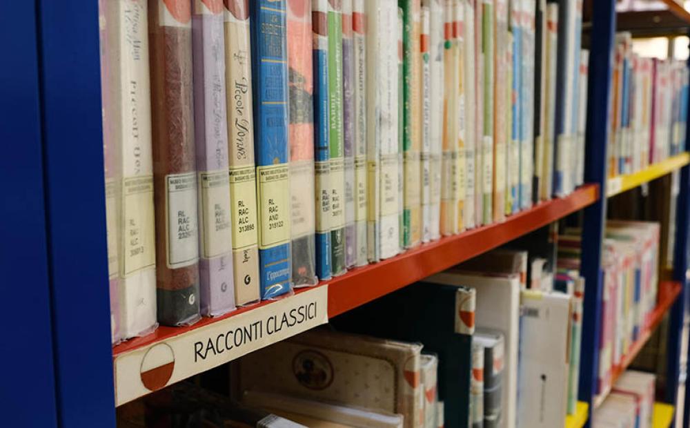 scaffale della biblioteca civica