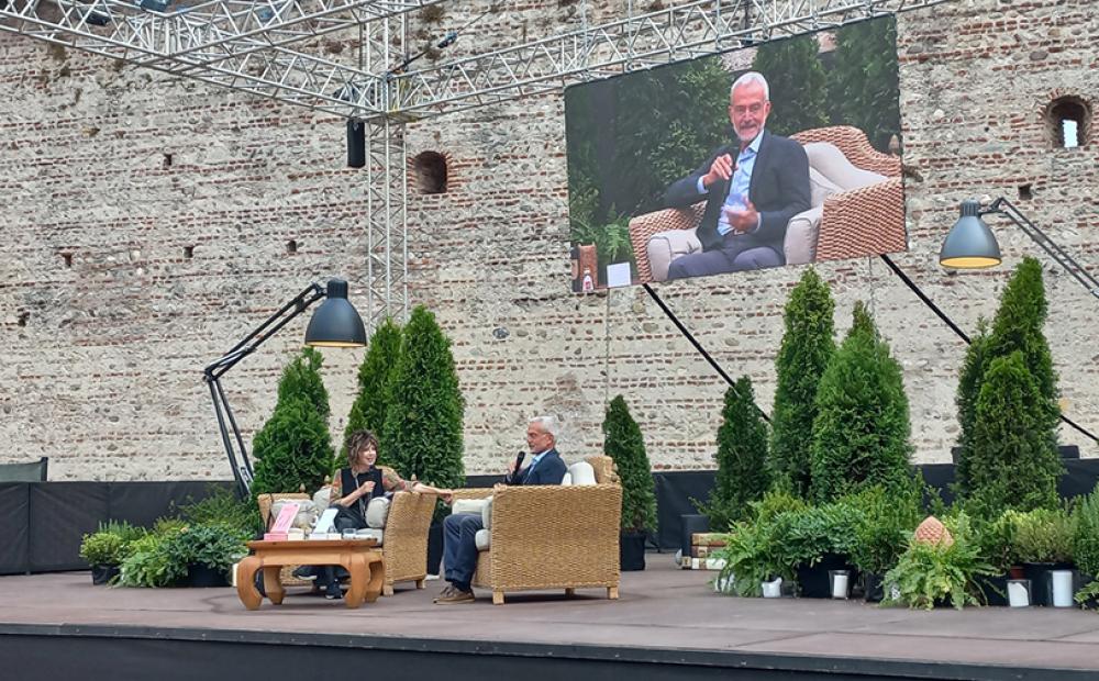 In serata è seguito un seguitissimo incontro con il popolare attore e conduttore televisivo Luca Bizzarri, intervistato da Mario Calabresi.