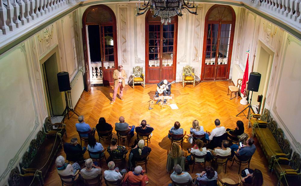 La narrazione come sempre dalla partitura ampia di Scarlini (drammaturgo, saggista, storyteller, curatore di mostre, la sua un’opera eclettica) è stata accompagnata dalle musiche eseguite alla chitarra dal Maestro Alberto Mesirca, nipote del fu Giuseppe, colui che ha ritrovato gli importanti carteggi con Malipiero, Comisso e molti altri esponenti culturali del Novecento.