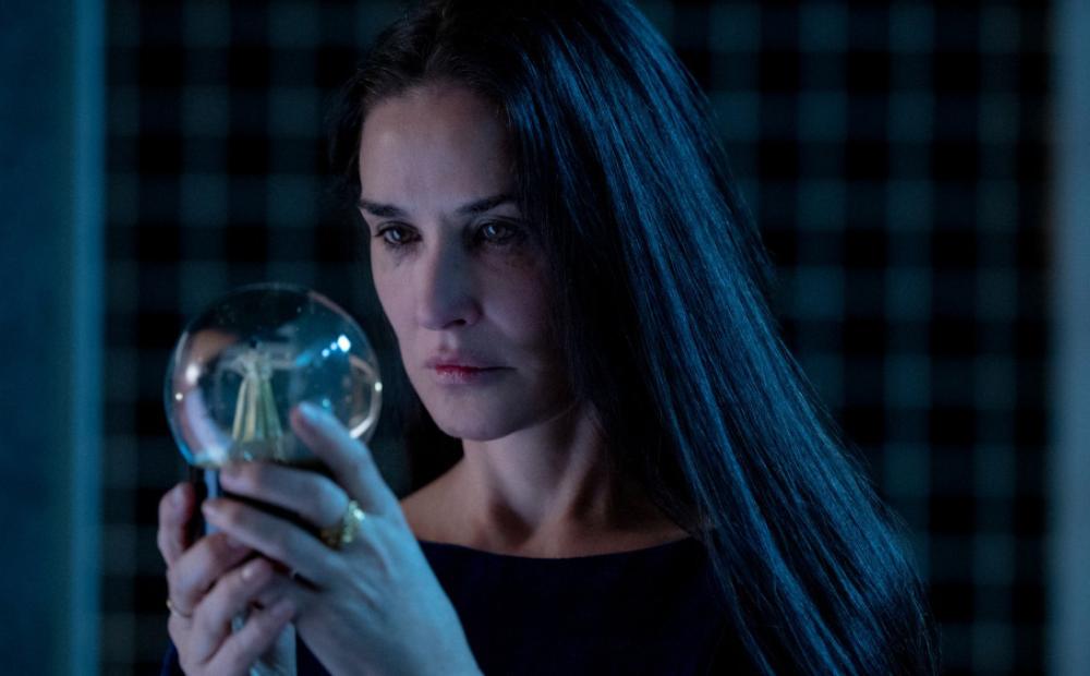 Viene da chiedersi se sia uno sguardo diverso, quello con cui spettatori e spettatrici percepiscano i lievi accenni al futuro crollo del corpo di Demi Moore messi in risalto in certe inquadrature, e quale sia dei due l’occhio più impietoso. Forse non è tanto il loro quanto il suo, e questo è il problema vero: il “cattivo” è lo sguardo della donna bellissima vestita in rosso che si prepara a uscire dopo tanti anni con un per sempre innamorato ex compagno di scuola, e che guardando le sue immagini riflesse nelle gigantografie e nello specchio capisce — per sempre — che non si piace più. Elisabeth si fa convinta che non si piacerà e non piacerà mai più, e si scarabocchia con rabbia il viso con il trucco, si ferisce di rosso. Scena di un realismo memorabile.