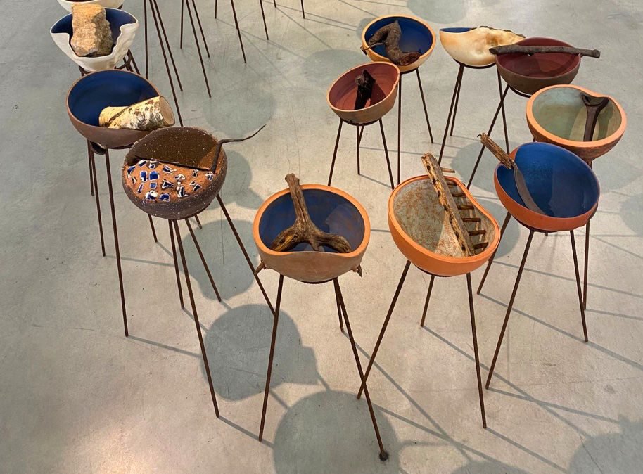 In mostra e all’interno della conversazione, spazio è stato dedicato anche alle installazioni, opere dove Stropparo assembla materiali eterogenei, alcuni di questi spesso semplici o destinati allo scarto, redivivi in composizioni evocative che generano nuovo pensiero. I suoi manufatti, anche di grandi dimensioni, rifiutano ogni intento didascalico per concentrarsi su una tensione di matrice poetica, pur mantenendo sempre una forte relazione con la materia naturale.