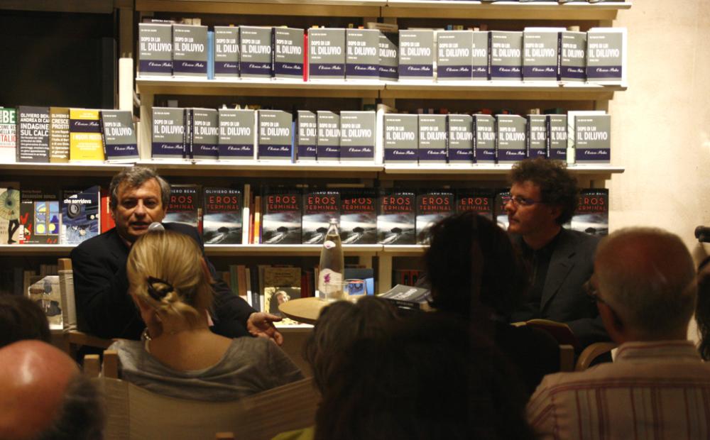 Oliviero Beha ospite dell’associazione culturale Le colline ha presentato due suoi libri a Vicolo Gamba. Intervistato da Lorenzo Parolin ha parlato di "Dopo di lui il diluvio - Weimar, Italia" edito da Chiarelettere, e “Eros Terminal - Il sesso, l'età, il potere” e l’incontro è stato anche occasione ghiotta per parlare dei mali che attanagliano il nostro Bel Paese, definito dal giornalista “una palude per Caimani”. Ad un lustro dall’uscita del suo pamphlet dagli scenari profetici "Crescete & prostituitevi", l’autore si chiede e chiede ai lettori che cosa succederà quando sarà finita la stagione di Berlusconi, se davvero “dopo di Lui” ci sarà “il diluvio”. L’analisi che compie Beha, e la suddivide in tre parti, storica, politica, e pornografica, parla dell’era del “berlusconismo” con toni feroci, spesso polemici: a sommi capi la magistratura è in crisi, e per questo la stampa, consequenzialmente, si assurge il compito di enfatizzare la “gogna mediatica”; la comunicazione e l’informazione sono in crisi, o si è di parte, schierati, o si viene zittiti con atti di vero e proprio mobbing - ... questa levata di scudi per Santoro, la Dandini e compagnia non è egalitaria e democratica, è impensabile per chi non interessa alle segreterie di partito -; in sostanza il sistema Italia è in crisi e pare incapace di uscire dal tunnel della depressione. Beha ha usato spesso il termine “malata”, e questo a pelle lo sentiamo tutti, ma non ha indicato una cura efficace per questa Italia dalla febbre alta. Forse la terapia richiede di sfuggire alla luce fredda della cronaca e di infilarsi tra le ombre incerte del futuribile. E’ questo scatto che fa l’autore con Eros Terminal, il suo “primo romanzo”, una sorta di diario del piacere, di biografia erotica dell’Innominato che attraverso la scrittura allontana da sé, e quindi dà forma, ai suoi pensieri e alla sua vita. Numerose le domande in sala rivolte di volta in volta allo scrittore, al giornalista, al cronista sportivo, non poteva certo mancarne una sui prossimi Mondiali di calcio: Beha ha fotografato l’evento con poche chiare parole, e tutte avevano a che fare col marketing e con l’economia più che con lo sport. Forse il Diluvio no, ma una pioggerellina sana e ristoratrice...