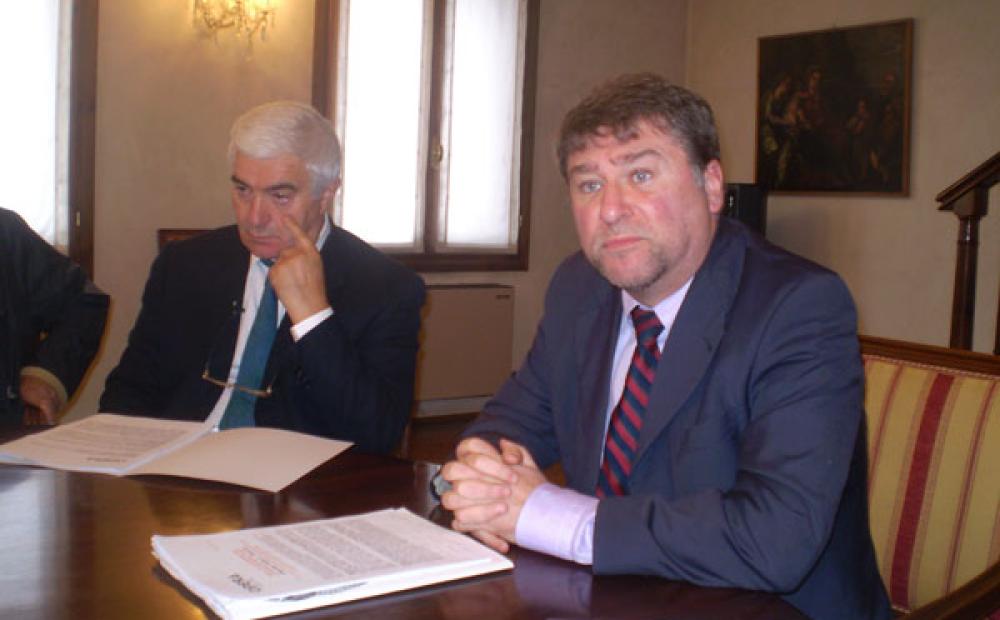 Il curatore artistico Loris Parise e l'assessore Carlo Ferraro alla conferenza stampa di presentazione
