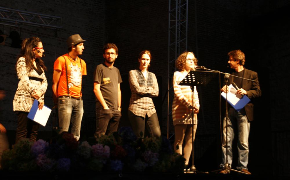 sul palco con i presentatori alcuni degli organizzatori di Cantieri Giovani