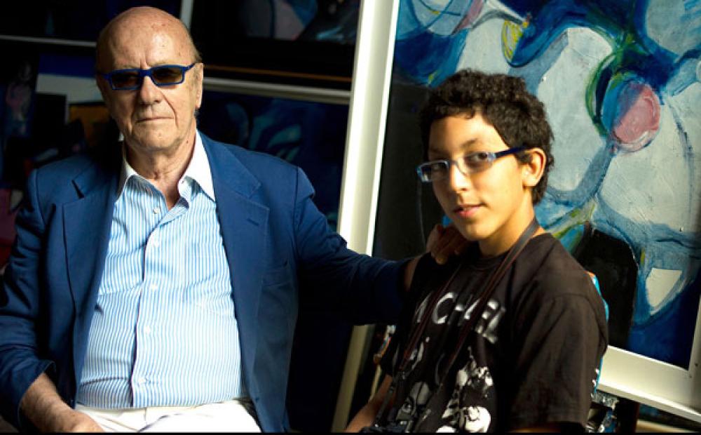 Incontro tra generazioni: l'artista bassanese Vito Pavan e il giovane Reda Benmakaddem (Marocco). Foto: Lara Platman - Boxing Bassano