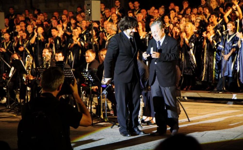 La conclusione della serata è stata resa indimenticabile dalla consegna da parte del Prefetto di Milano Gian Valerio Lombardi della Medaglia di Rappresentanza del Capo dello Stato all’Italian Gospel Choir per l’importanza di questo progetto di unione nazionale sotto l’egida della musica, un riconoscimento che il Presidente Napolitano, in occasione del 150° dell’Unità d’Italia, ha voluto dare all’Ensamble, l’intera Piazza Duomo in un abbraccio collettivo ha poi intonato l’Inno di Mameli.