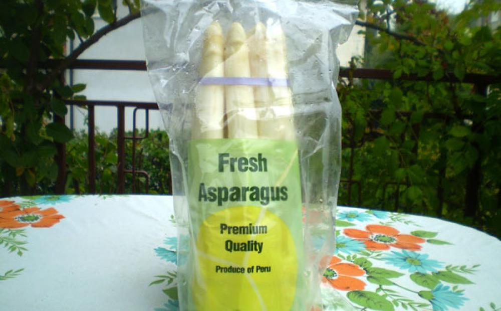 Asparagi bianchi nel pieno della stagione autunnale? Sissignori: provengono dal Perù, sono etichettati come “fresh asparagus” e sono in vendita in alcuni negozi di frutta e verdura e al mercato ortofrutticolo di Bassano del Grappa. Prezzo medio: circa 8 euro al chilo. Il prodotto - ci dice un fruttivendolo del centro storico - piace ed è venduto bene.