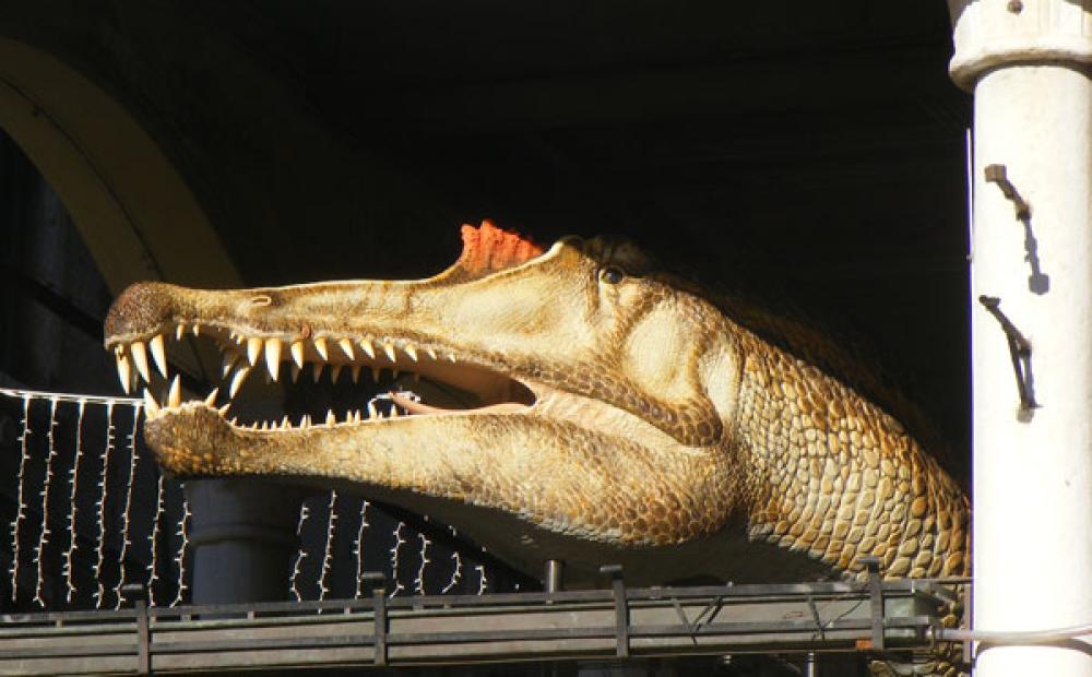 Ora c'è anche la testa di un minaccioso dinosauro carnivoro, coi grandi denti aguzzi in bella vista e una poco civettuola cresta rossa davanti agli occhi, che spunta da oggi dal Comune di Bassano.
