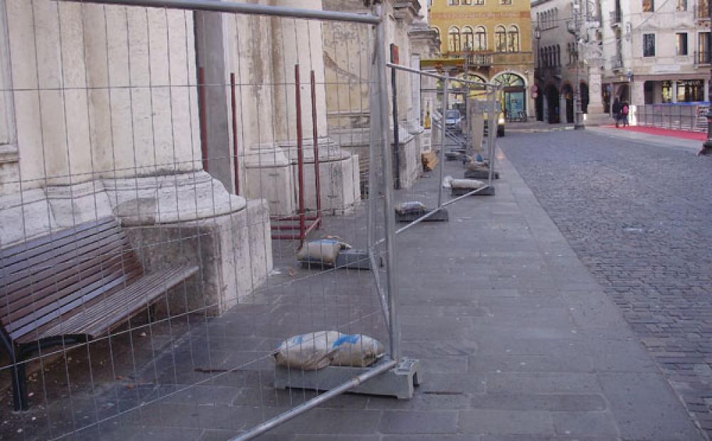 Siamo costretti a tornare ad occuparci delle transenne di sicurezza - o, se preferite, delle “barriere mobili” - del cantiere sulla facciata della chiesa di San Giovanni in Piazza Libertà a Bassano.