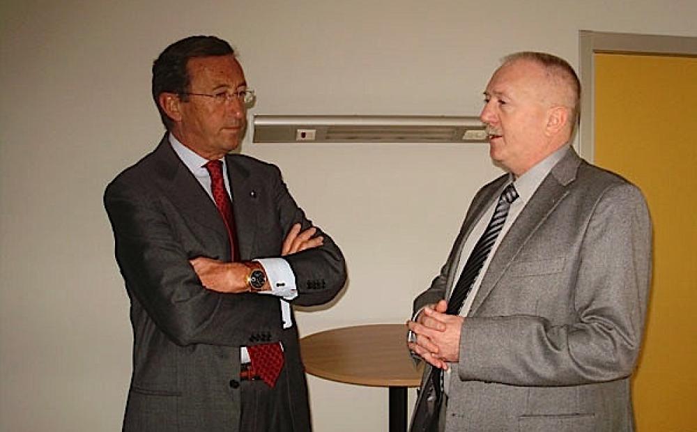 Il presidente della Camera Gianfranco Fini con il presidente della casa di riposo Giancarlo Andolfatto (foto Alessandro Tich)