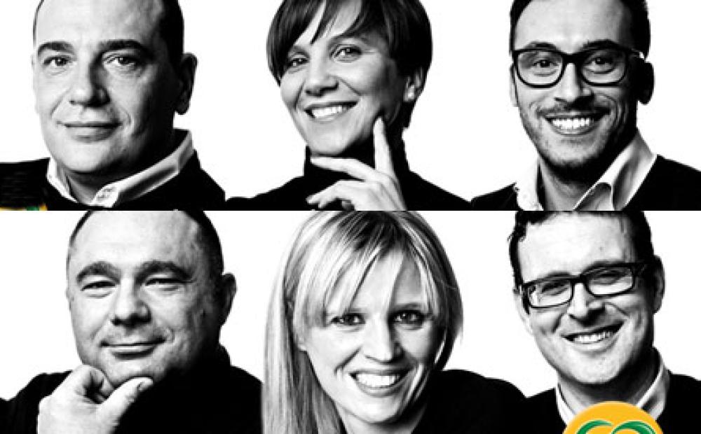 In alto da sinistra: Mauro Salvemini, Maria Pia Farronato, Simone Bontorin. In basso da sinistra: Mauro Pozzobon, Tamara Baron, Piero Cusinato
