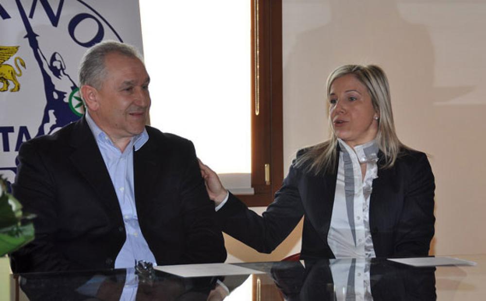 Il candidato sindaco Paolo Bordignon con il sindaco uscente Manuela Lanzarin