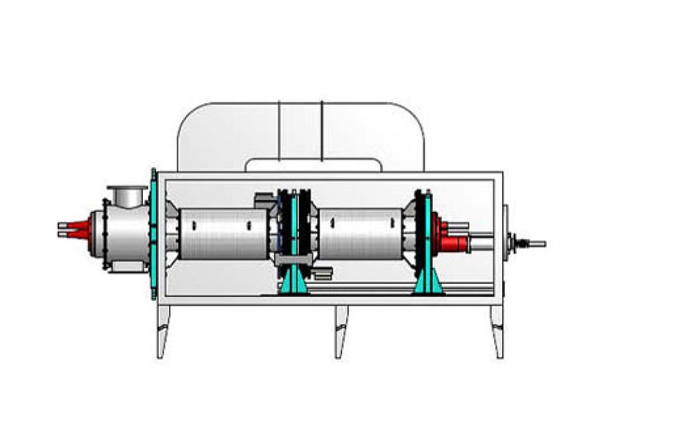 Il materiale entra nel cilindro tramite una coclea, e cioè una “vite senza fine”, che si vede a destra e che porta il materiale dentro il reattore di continuo.