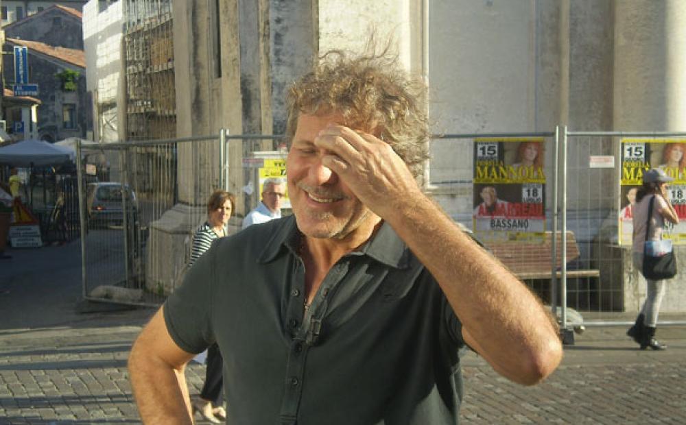 Renzo Rosso in una pausa delle riprese dello spot "pro San Giovanni" per il FAI di Bassano (foto Alessandro Tich)