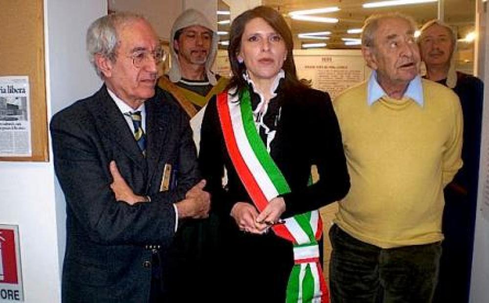 Giannino Marzotto con il presidente del Museo dell'Automobile Nino Balestra e il sindaco di Romano Rossella Olivo all'inaugurazione della mostra sulla “Galleria del motorismo, mobilità e ingegno veneto”, a lui dedicata (Archivio Bassanonet)