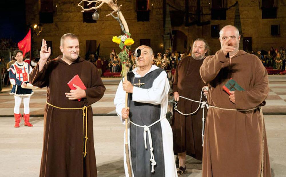 Ma partecipare all'evento da referente del Comune non gli è bastato: fatto sta che al termine dell'ultima rappresentazione della rievocazione storica - lo spettacolo di gala di domenica sera 9 settembre - ha lasciato il suo posto in tribuna centrale, si è tolto giacca e cravatta, ha indossato il costume da frate ed è “apparso” in prima persona in mezzo ai figuranti nel corso dell'applaudita sfilata finale, attorno alla Scacchiera, prima del pirotecnico incendio del Castello.
