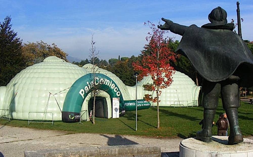 Si chiama “PalaComieco”. “Pala” perché è un vero e proprio palazzetto gonfiabile: una tensostruttura itinerante, che sta girando le piazze d'Italia, composta da tre cupole a forma di igloo.