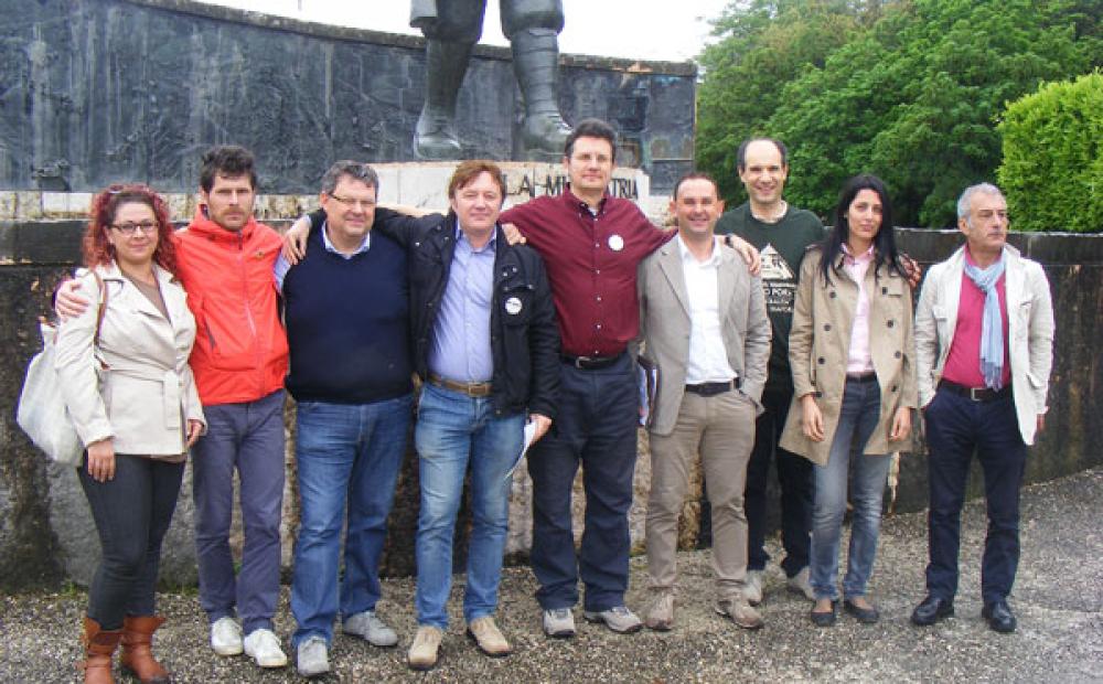 I referenti del meetup Movimento 5 Stelle del Grappa davanti al monumento in parco Ragazzi del '99 a Bassano (foto Alessandro Tich)