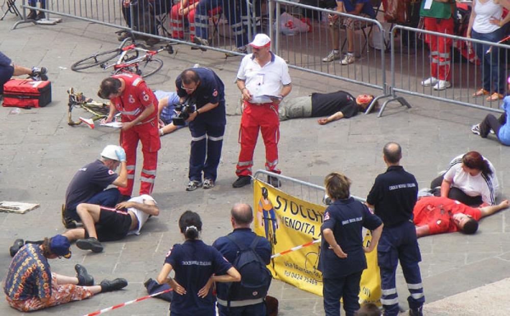 In centro a Bassano la 19° Gara Regionale di Primo Soccorso della Croce Rossa Italiana. Sette squadre venete della C.R.I. in competizione, con incidenti e feriti simulati in vari punti della città e un severissimo regolamento di gara
