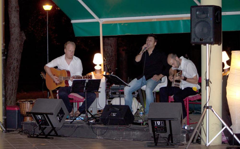Due chitarre, suonate da Roberto Boscardin e Manuel Mocellin, e la voce di Dario Petucco. Basta poco per creare l'atmosfera in un luogo che già di per sé stesso è accogliente e delizioso: Parco Ragazzi del '99, l'ameno e spazioso Central Park di Bassano del Grappa.