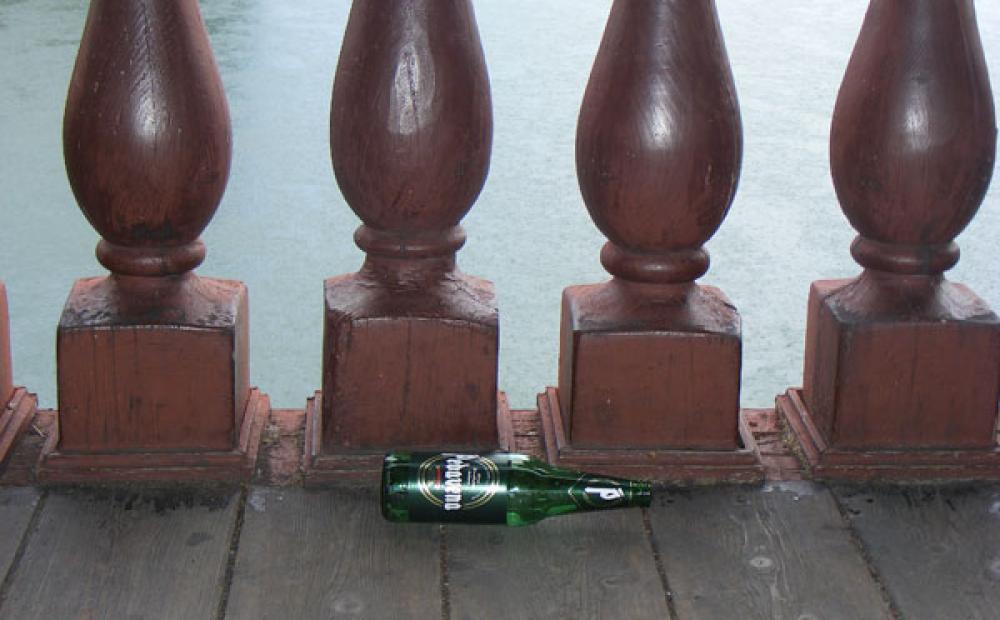 Neanche a farlo apposta. Nel tardo pomeriggio di oggi sono andato sul Ponte di Bassano, per vedere un po' che aria tira, e la bottiglietta di birra abbandonata sul balcone sud del manufatto palladiano sembrava quasi che parlasse, e mi dicesse: “Fotografami”. Cosa che io ho fatto, ovviamente.