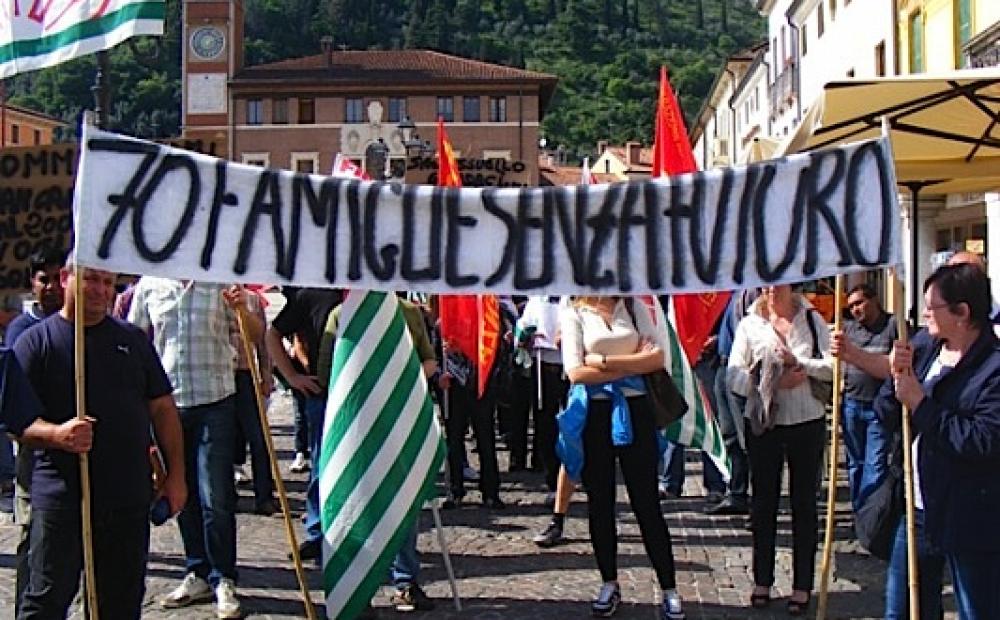 La manifestazione dello scorso maggio dei lavoratori della Commital-Sami a Marostica (foto: archivio Bassanonet)